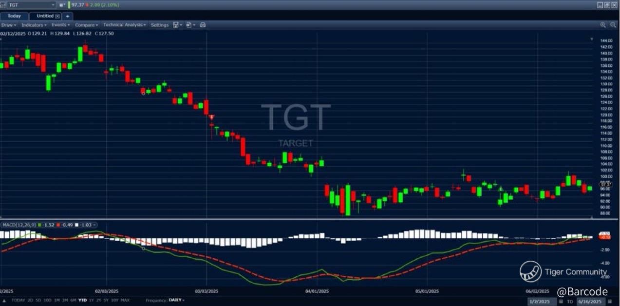- Tui Jude·06-18TOP⭐️🌠⚡️Appreciate the callout on the stablecoin angle, never thought Walmart would go that route while the chart’s this messy. $TGT looks like the calmer play for now, I’ll be watching that MACD setup you mentioned. Thanks for keeping it sharp BC! #️⃣✂️💕4Report