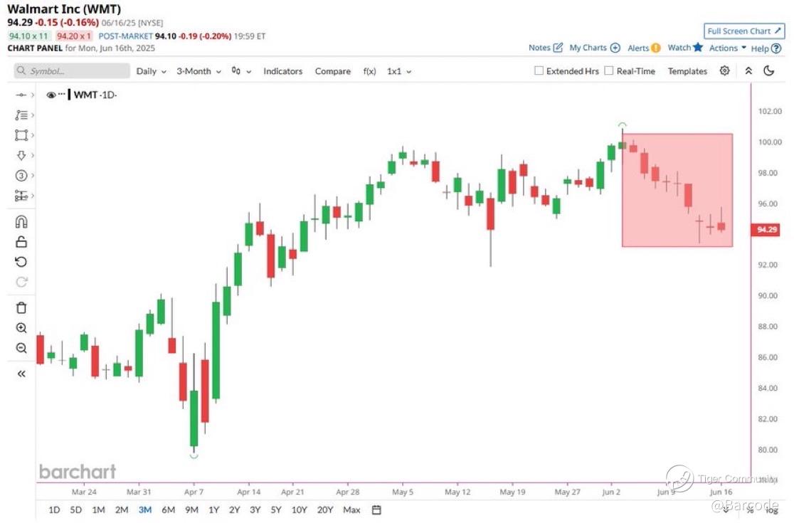Nine consecutive red candles have turned Walmart ($WMT) from a retail titan into a technical cautionary tale. As of 17Jun25, 🇳🇿NZ time, the stock sits at $94.29, down -5.2% from its early June peak above $100, a slide that stands in stark contrast to the S&P 500’s +1.3% gain over the same period. This isn’t just a blip; it’s the longest losing streak since August 2011, and it’s raising questions about whether Walmart, and by extension, Target ($TGT), are caught in a structural unraveling of the big-box retail model. I’m diving into the technicals, the macro-economic pressures, and the latest developments to figure out what’s driving this, what might happen next, and where the opportunities lie.