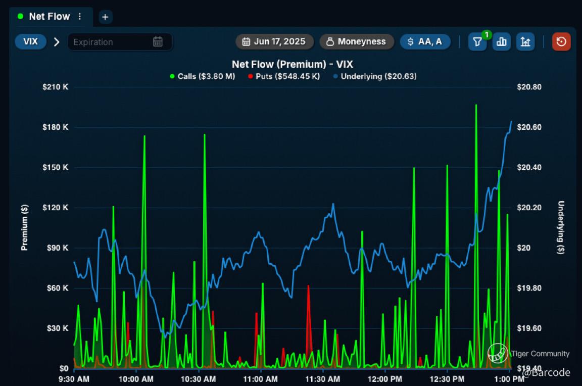 - Hen Solo·06-18TOP🌟💫🌠$VIX flow was the giveaway for me today. Those $3.8M in calls screamed hedge wave incoming. Loved the Diego Garcia angle too, geopolitical risk is way underpriced. Thanks for keeping it this real BC 💟3Report