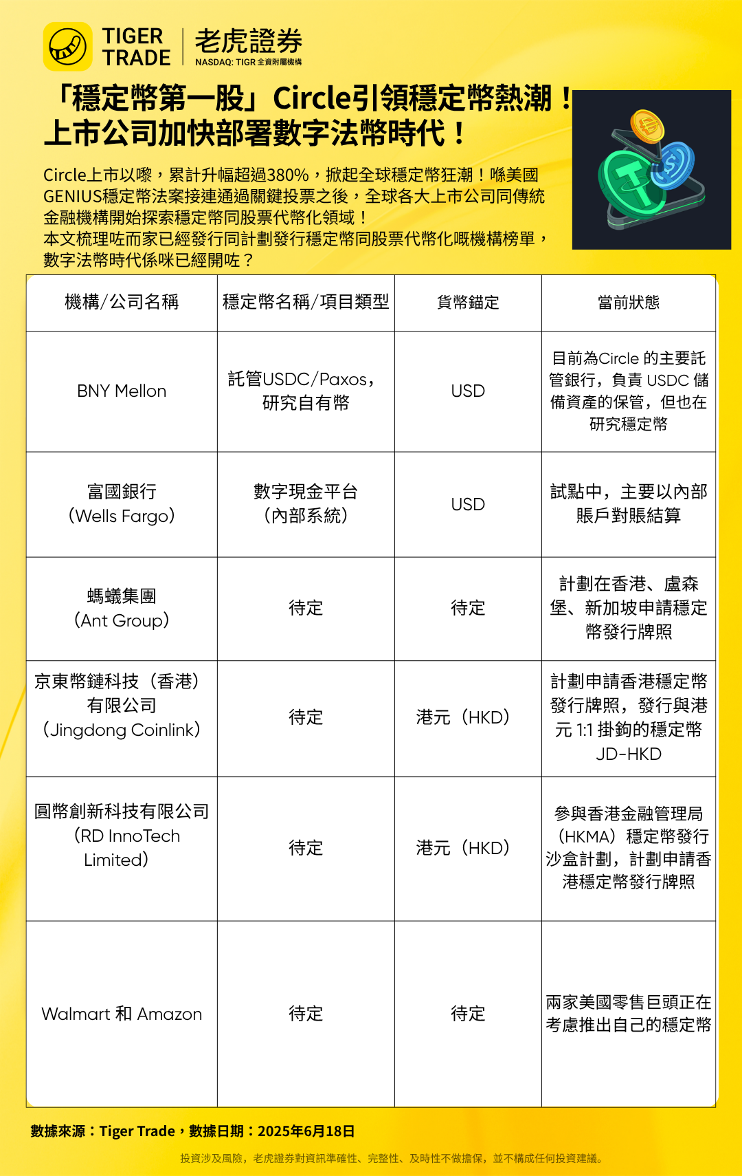 Hello小虎們,隔夜,美國參議院通過了GENIUS穩定幣法案,下一步將闖關眾議院審議與最終表決,「穩定幣第一股」Circle盤中高開低走,繼續創下新高的165.60美元,上市以來累計升幅超380%!大家是不是認為應該Sell in News了呢?[Happy]