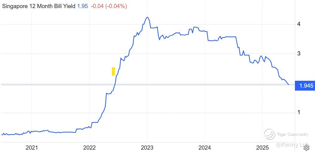 Investor yield expectations rise when safer alternatives like Singapore T-bills (offering 1.945% returns) or US 10 Years Risk Free Rate (offering 4.39%) become more attractive, forcing S-REITs to deliver higher distributions to remain competitive.