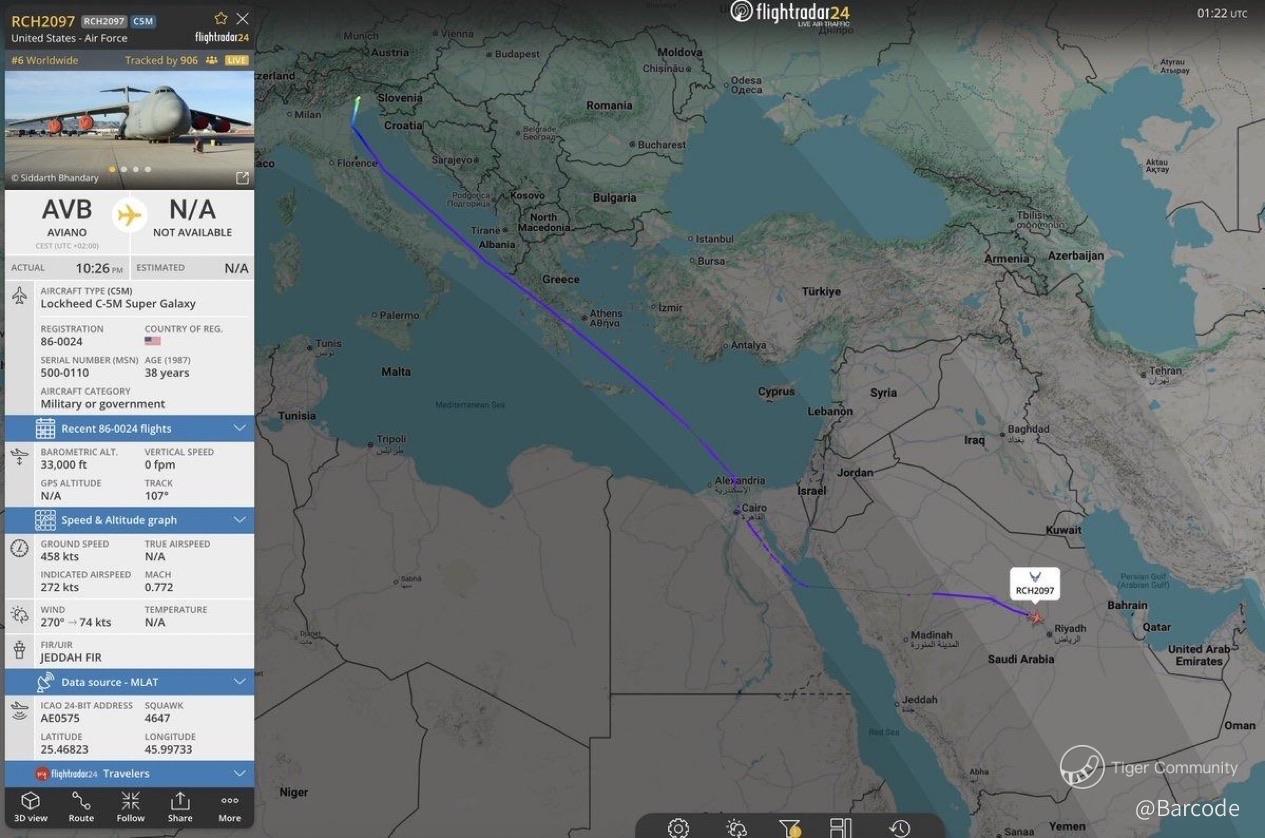 $S&P 500(.SPX)$ $SPDR S&P 500 ETF Trust(SPY)$ $United States Oil Fund LP(USO)$๐จ๐ฐ๐๏ธโผ๏ธ๐บ๐ธ U.S. Air Force C-5M Super Galaxy RCH2097 is enroute to the Middle East.