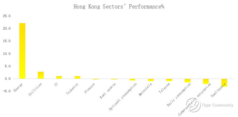 Amidst these negative developments, most sectors in Hong Kong stocks were down, except for energy and utilities which saw gains.