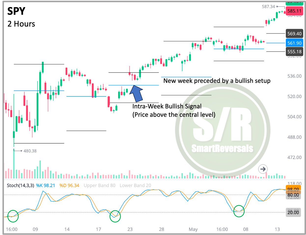 This weekly setup is the reason to even consider a bullish trade. Without it, any buying signal on a shorter timeframe is less reliable for long positions.