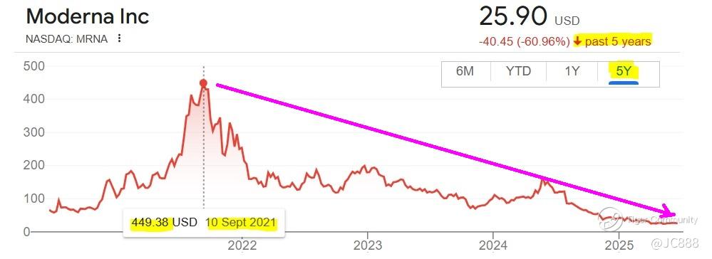 In 2021, who would have thought that MRNA that peaked at $449.38 per share would have ended up at $25.90 by 20 Jun 2025.