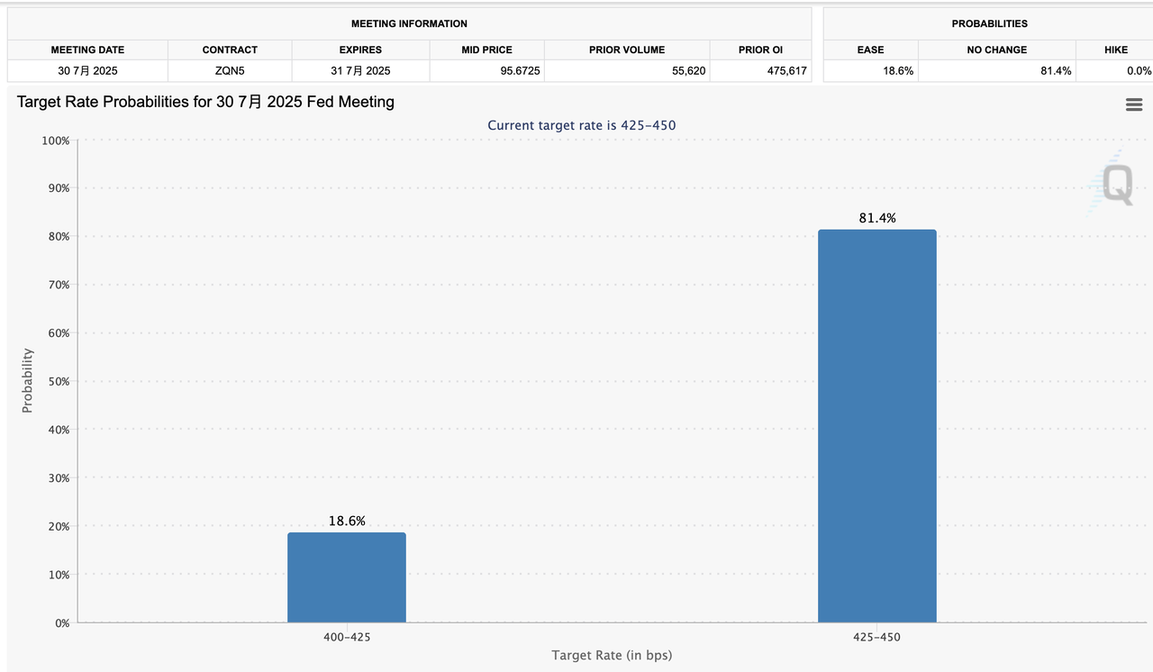 According to data from CME Group, the market currently prices in only a 23% probability of a Fed rate cut in July, with September being the more likely timing.