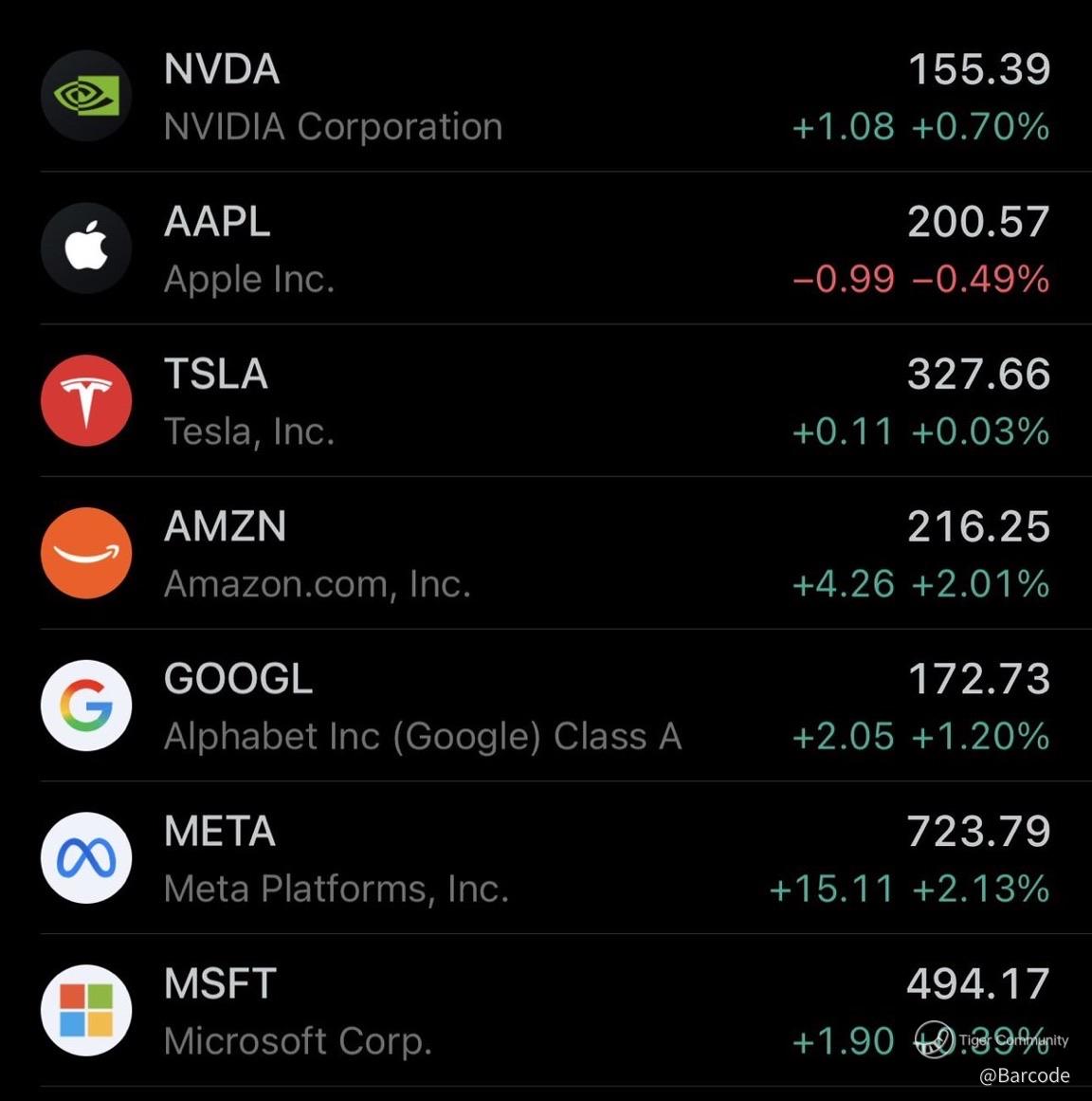 A magnificent day for the Mag 7 except for one rotten $AAPL 🍎: