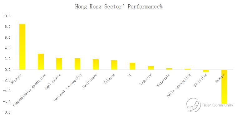 The same day, $GUOTAI JUNAN I(01788)$ received approval from the Hong Kong Securities and Futures Commission to offer virtual asset trading services. Their stock soared by 466%, driving a rally in Financial stocks, but Energy stocks struggle.