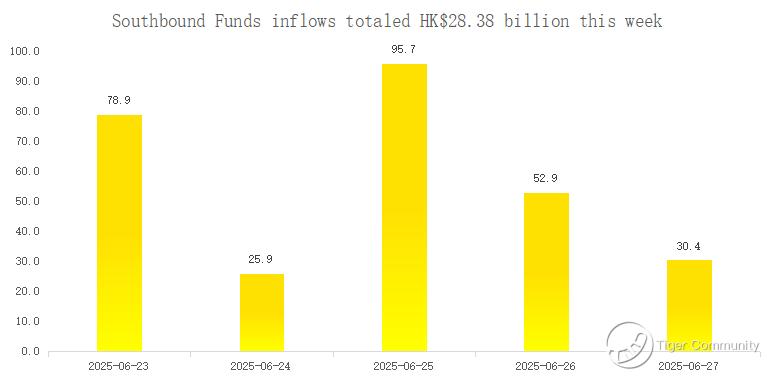 Southbound Funds inflows totaled HK$28.4 billion this week.