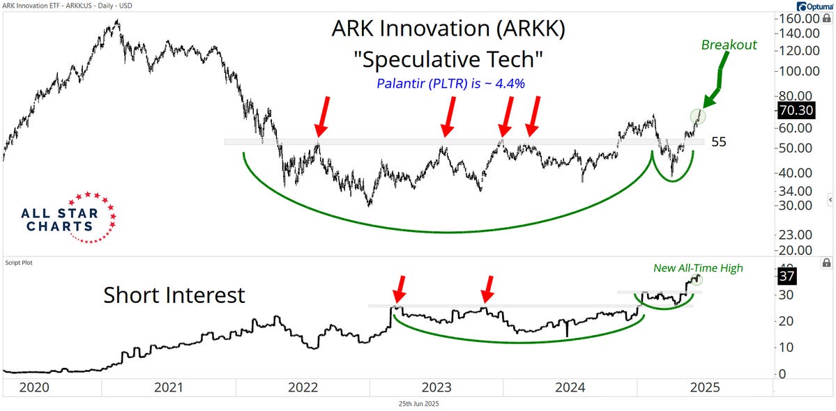 3. The Arc of ARK: And along similar lines, it’s interesting to see ARKK breaking out despite (or because of?) heavy shorting. It’s one of a number of speculative tech pockets breaking higher (e.g. NVDA/semiconductors) — which brings me to the next point…