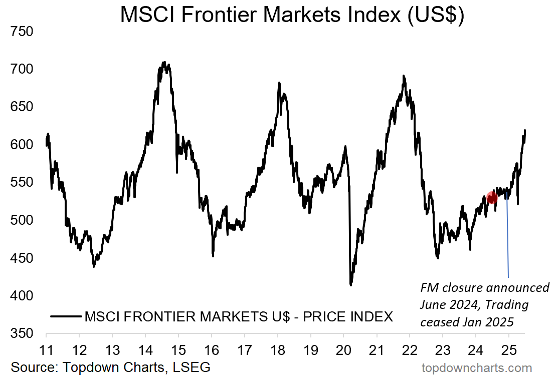 10. Blessed by Delisting (2/2): One I picked up on (because I’ve been routinely covering Frontier Market equities at Topdown Charts), is the closure of the only US listed FM equities ETF coincided with a key breakout in the MSCI Frontier Markets index. Very bittersweet news for those who used to follow that ETF.