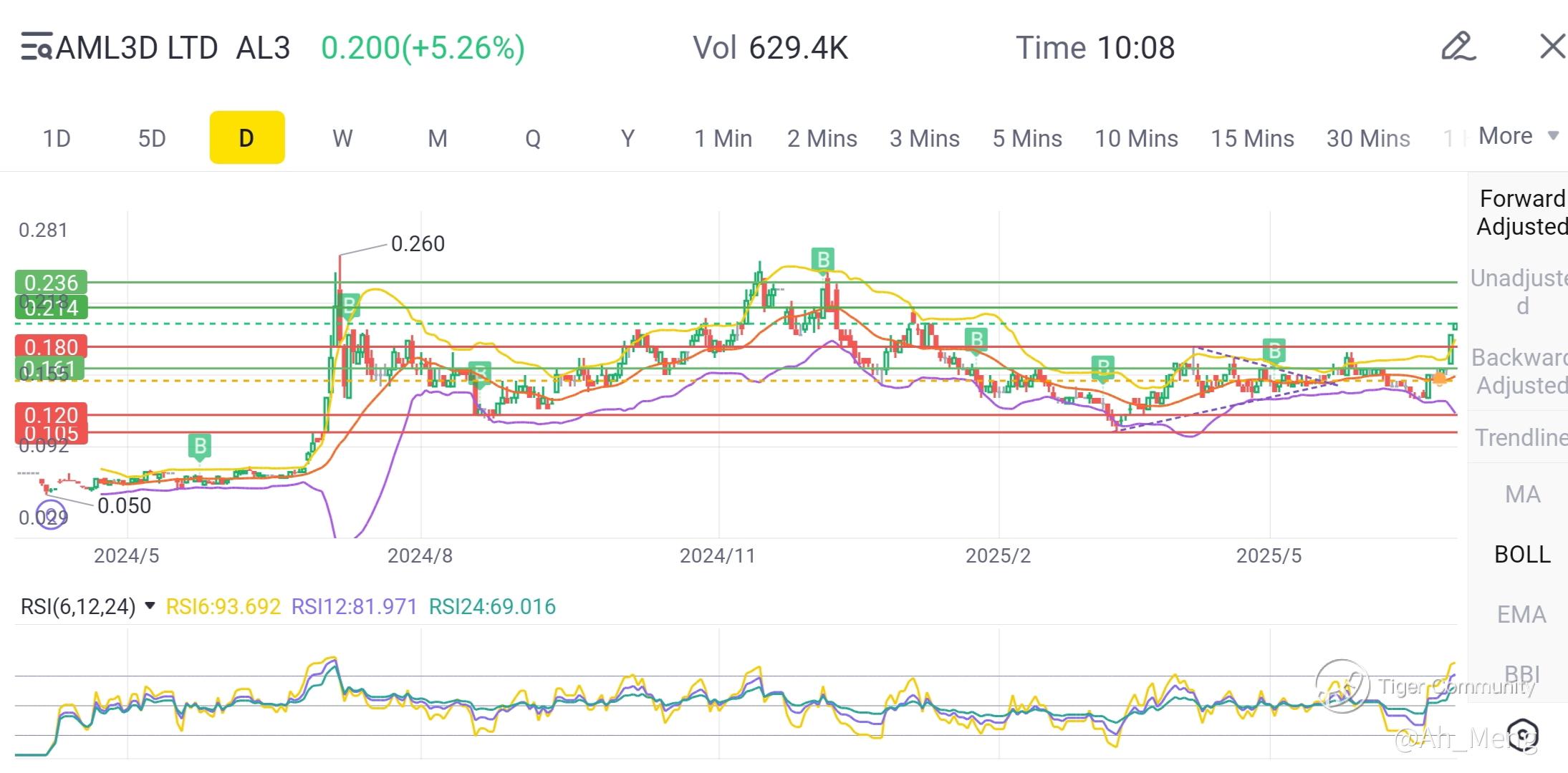 Point 1 above with increasing volume is definitely good for AML3D. Point 2 is the only concern near term. Having said that, the uptrend is very much intact, I see good chance of its share price going from strength to strength, especially with some contract wins announcements. If they indeed materialised as expected, its recent high from last December is likely to be taken out.