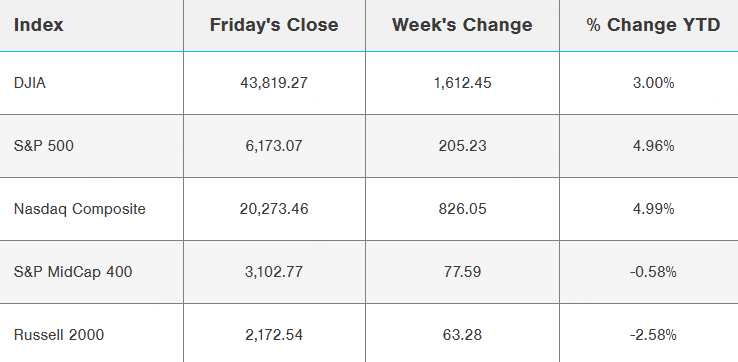 Stocks rallied in response to several positive developments during the week, including de-escalating tensions in the Middle East, dovish comments from several Federal Reserve officials, reports that the U.S. and China signed a new trade deal, and comments from several U.S. government officials indicating that more trade deals were close to the finish line. The S&P 500 Index and Nasdaq Composite, up 3.44% and 4.25%, respectively, both closed at record highs, while the Dow Jones Industrial Average, S&P MidCap 400 Index, and Russell 2000 Index all rose over 2.5%.