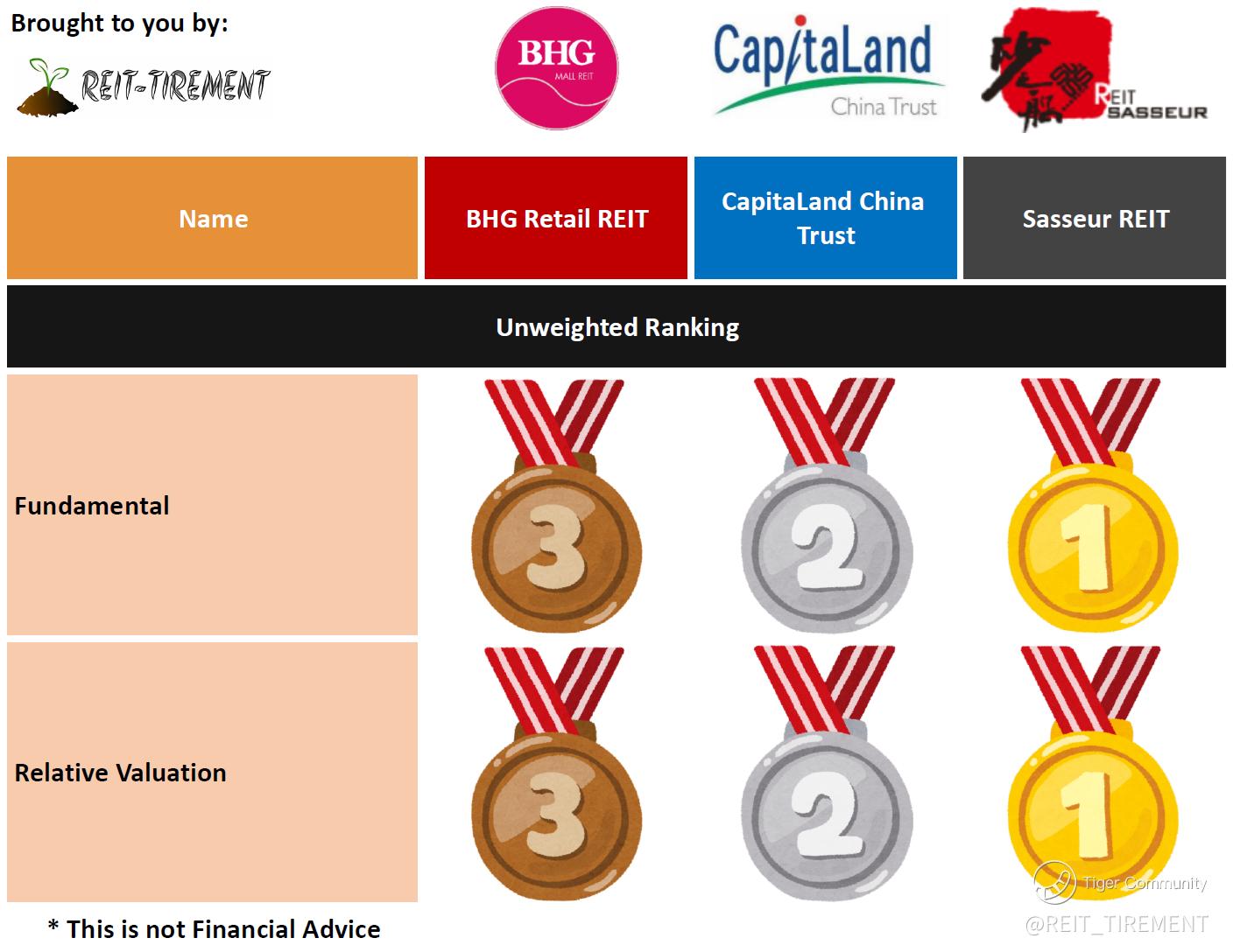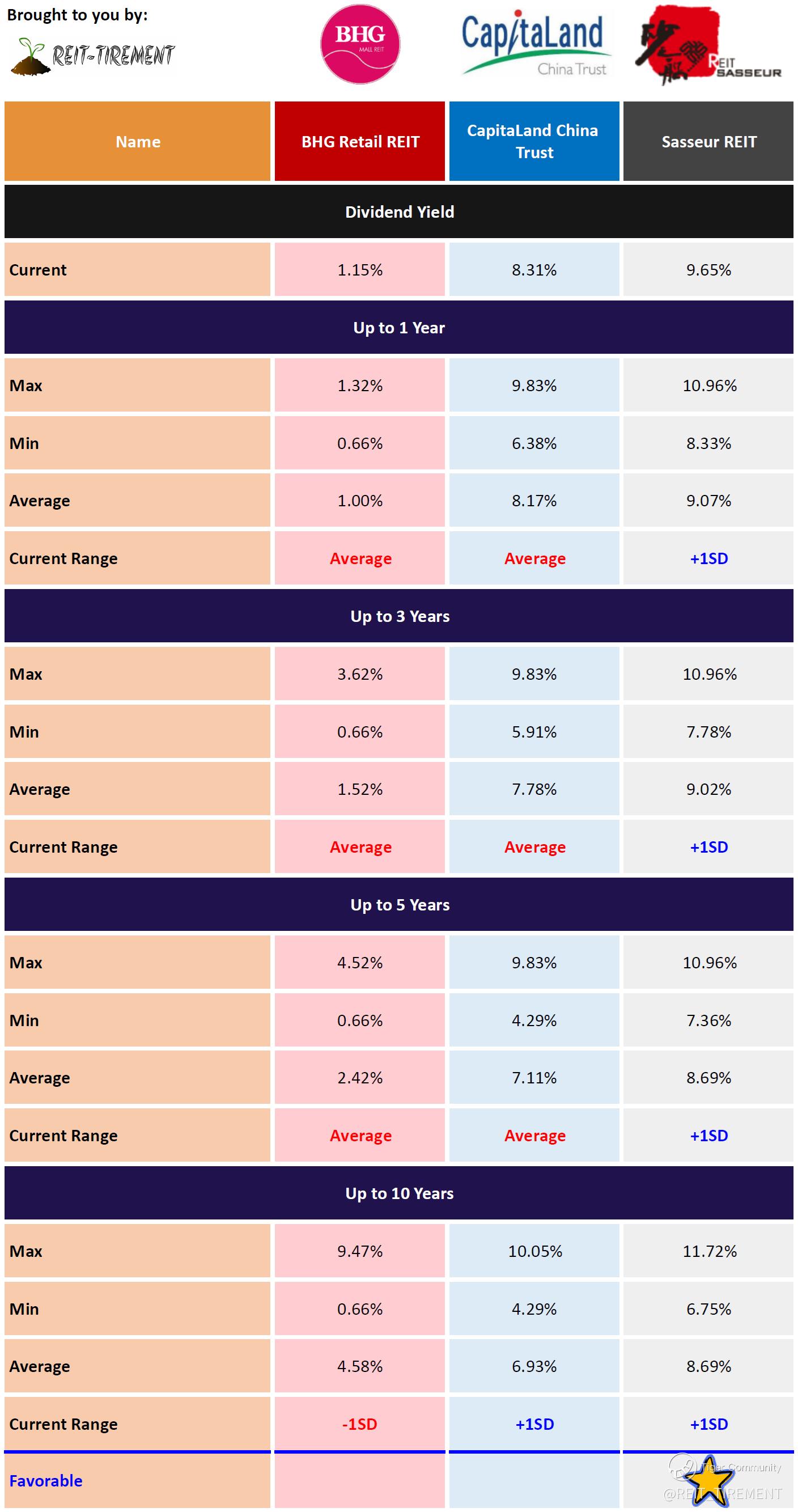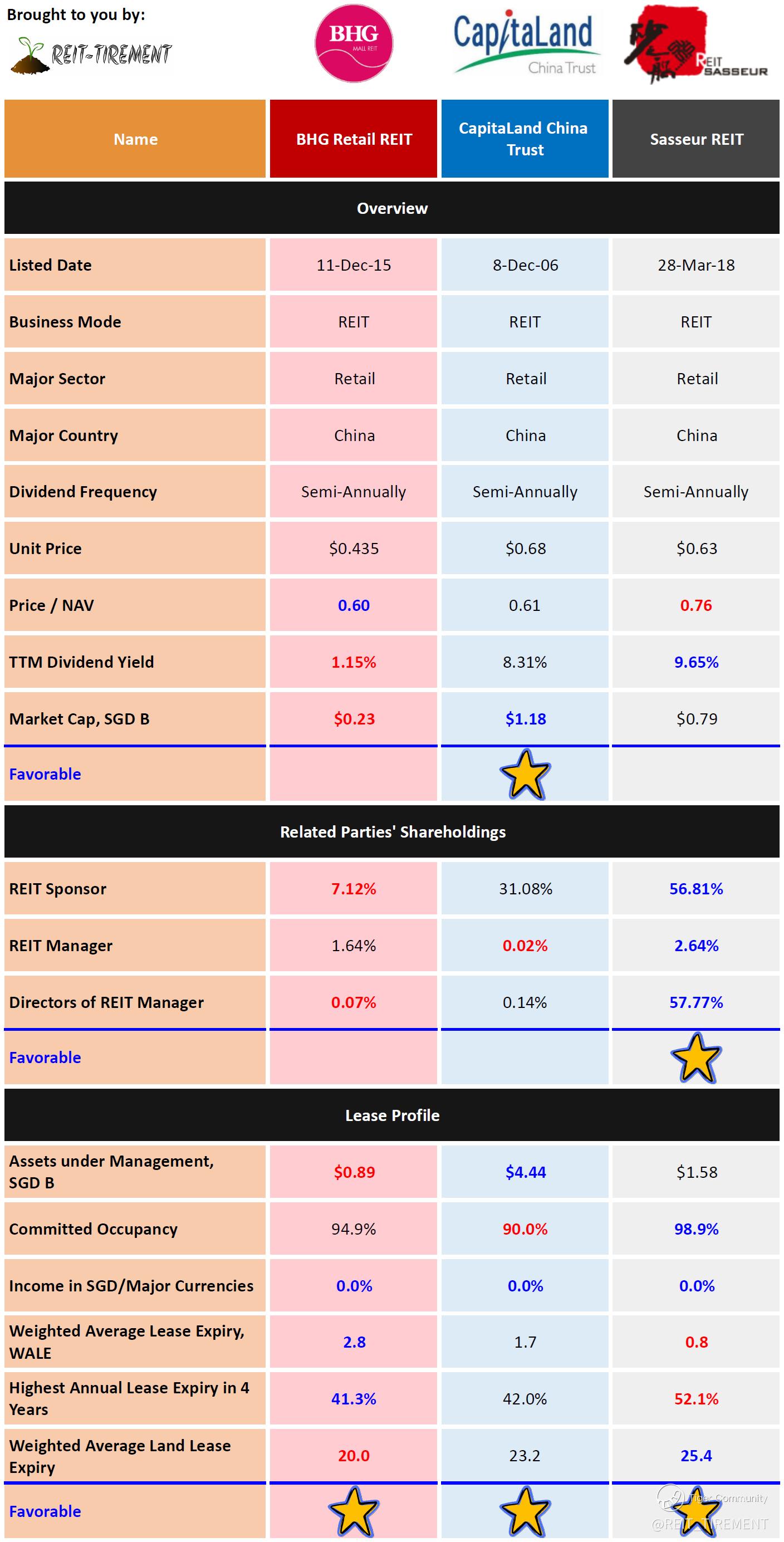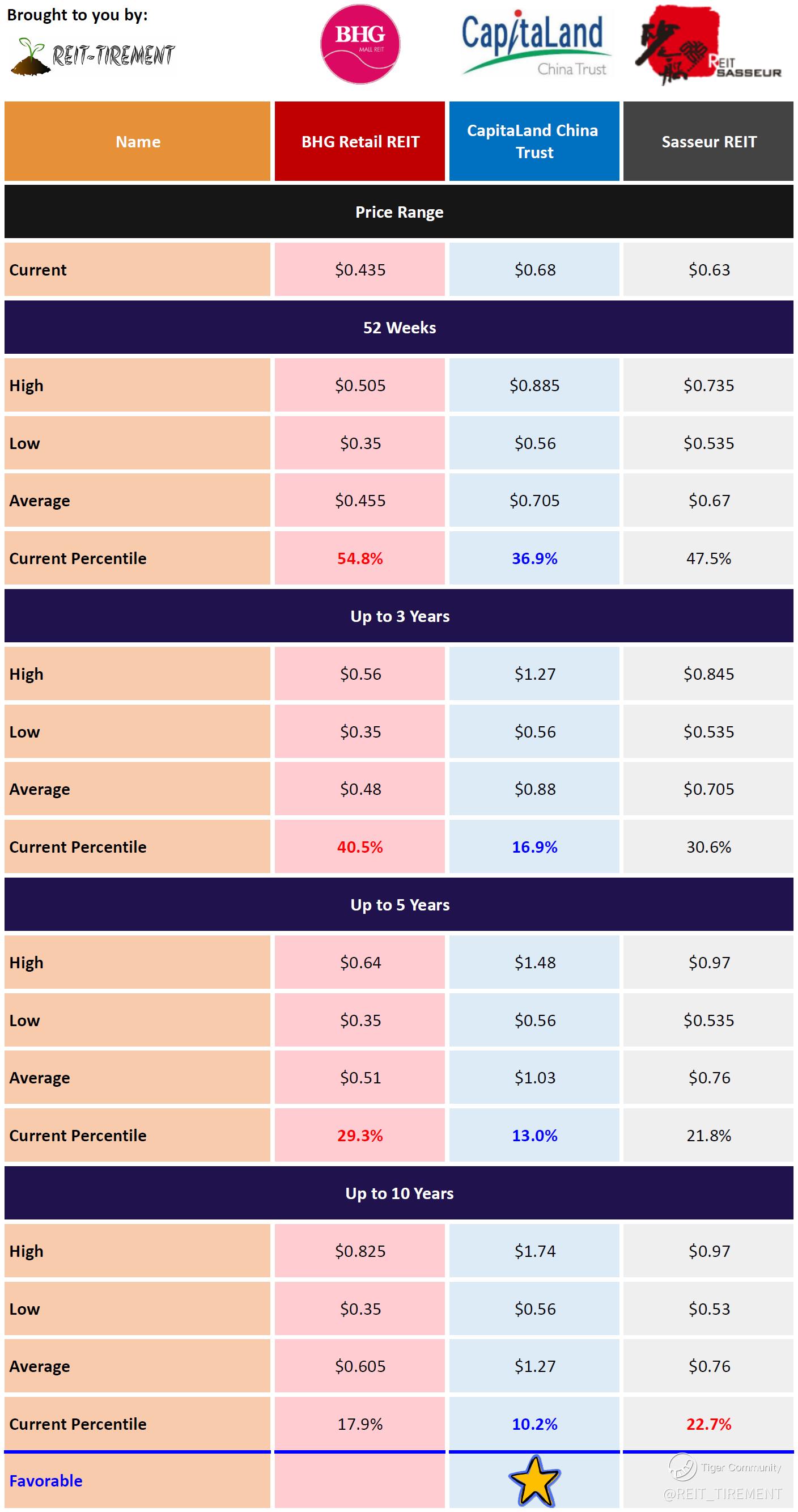 $BHG Retail Reit(BMGU.SI)$ $CapLand China T(AU8U.SI)$ $Sasseur Reit(CRPU.SI)$