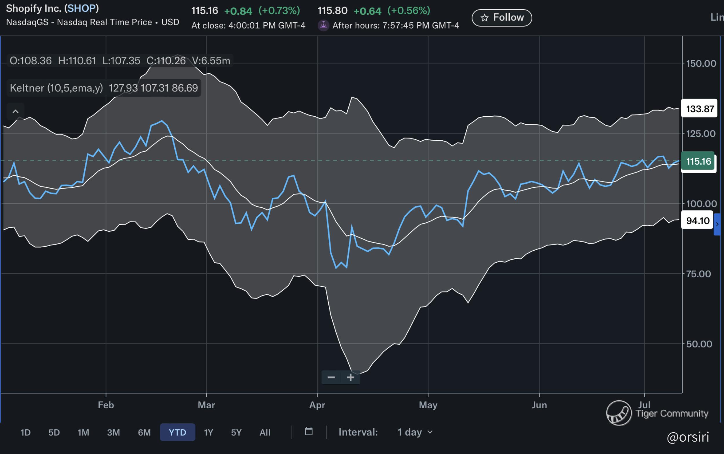 Momentum may wobble, but Shopify keeps pressing near its upper range.
