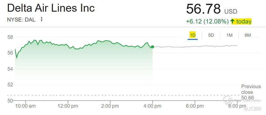 DAL stock had a massive surge of +12.08% to $56.78 per share, on Thursday prior to market opened for trading.