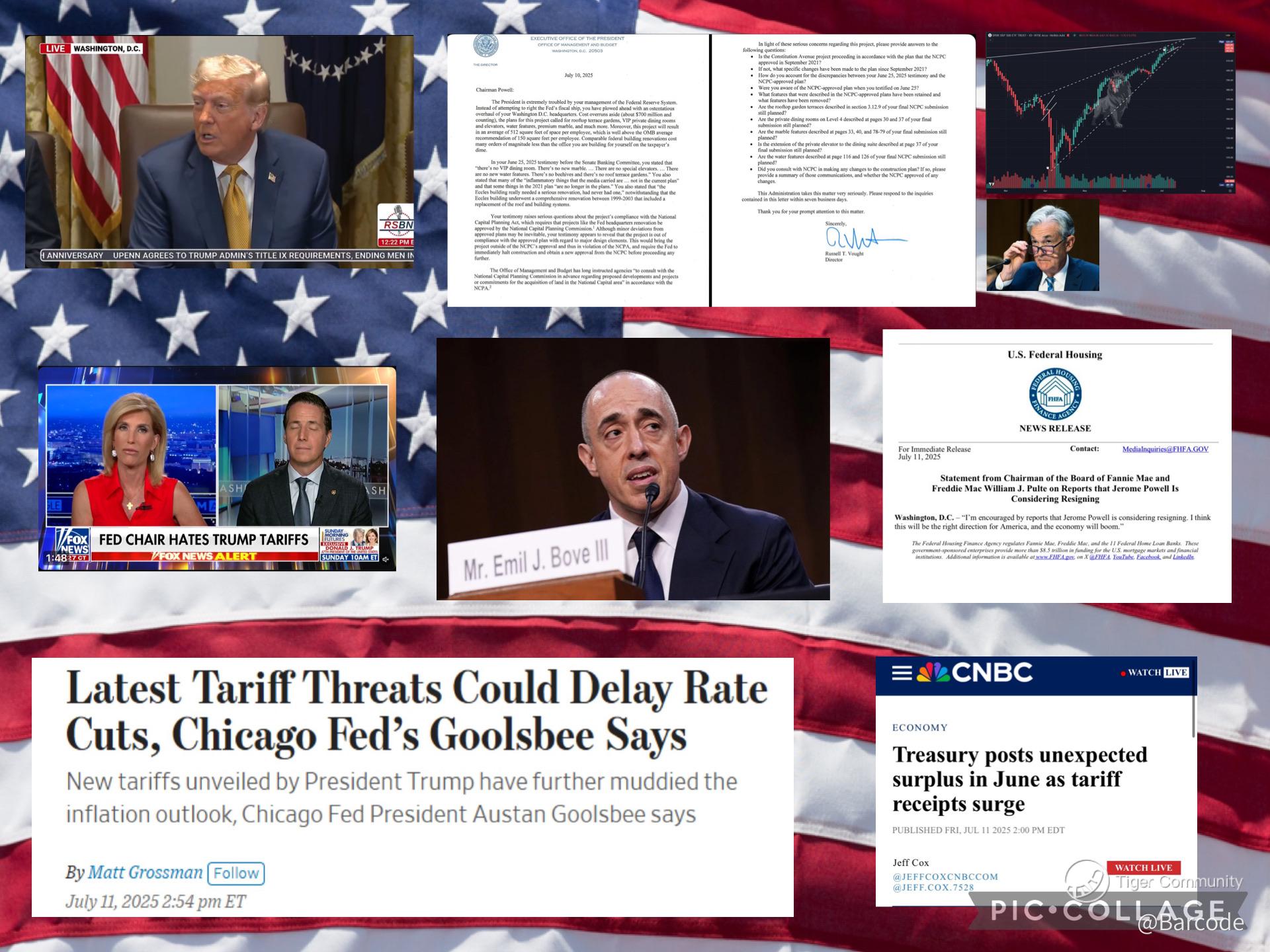 On 11Jul25, markets digested what might be the most chaotic 24 hours in Powell’s tenure: a potential resignation by the Fed Chair himself, blistering critiques from inside and outside the government, a tariff-triggered inflation spiral, and a bond market flashing red.