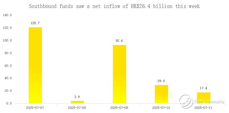 Southbound funds saw a net inflow of HK$26.4 billion this week.