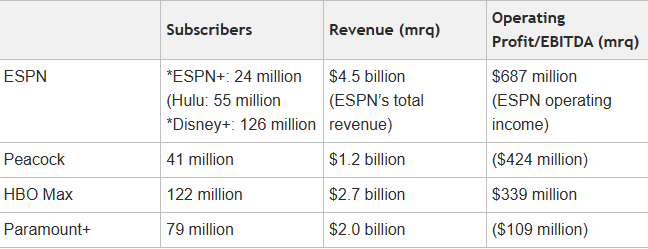 That would be on top of ESPN’s $4.5 billion in revenue today. And ESPN is also more profitable than any of the major streaming services.