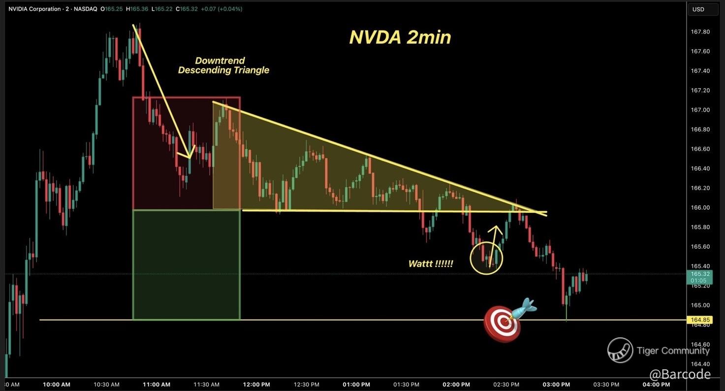 The volume spike coincided with a fakeout reversal off a descending triangle. Support at $164.85 held perfectly, and follow-through into post-market action confirmed structure. This wasn’t retail momentum. It was programmed capital allocation.