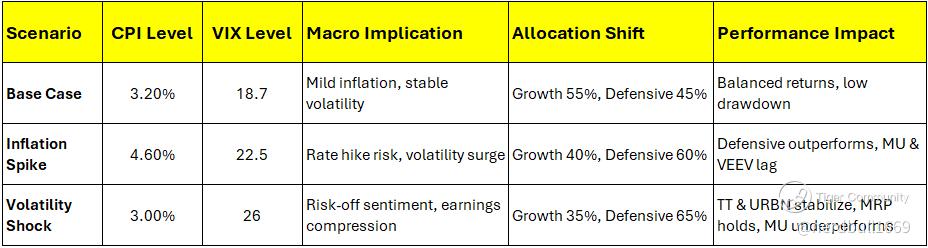 In the following section, I will be sharing how we simulate the return cones evolve post-earnings and under a September rate cut, then build a rebalancing heatmap based on CPI-VIX thresholds to guide tactical allocation shifts.