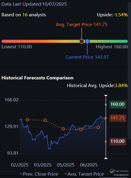 Based on 16 analysts from Tiger Brokers offering 12 month price targets for Morgan Stanley in the last 3 months. The average price target is $141.75 with a high forecast of $160.00 and a low forecast of $110.00. The average price target represents a 1.54% change from the last price of $143.97.