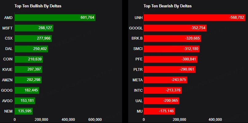 Based on option delta volume, traders bought a net equivalent of 601,764 shares of AMD stock. The largest bullish delta came from buying calls. The largest delta volume came from the 18-Jul-25 155 Call, with traders getting short 310,034 deltas on the single option contract.