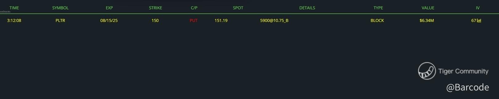 A massive $6.3M in $PLTR 150 puts was just sold into strength, right as Palantir flirts with all-time highs.