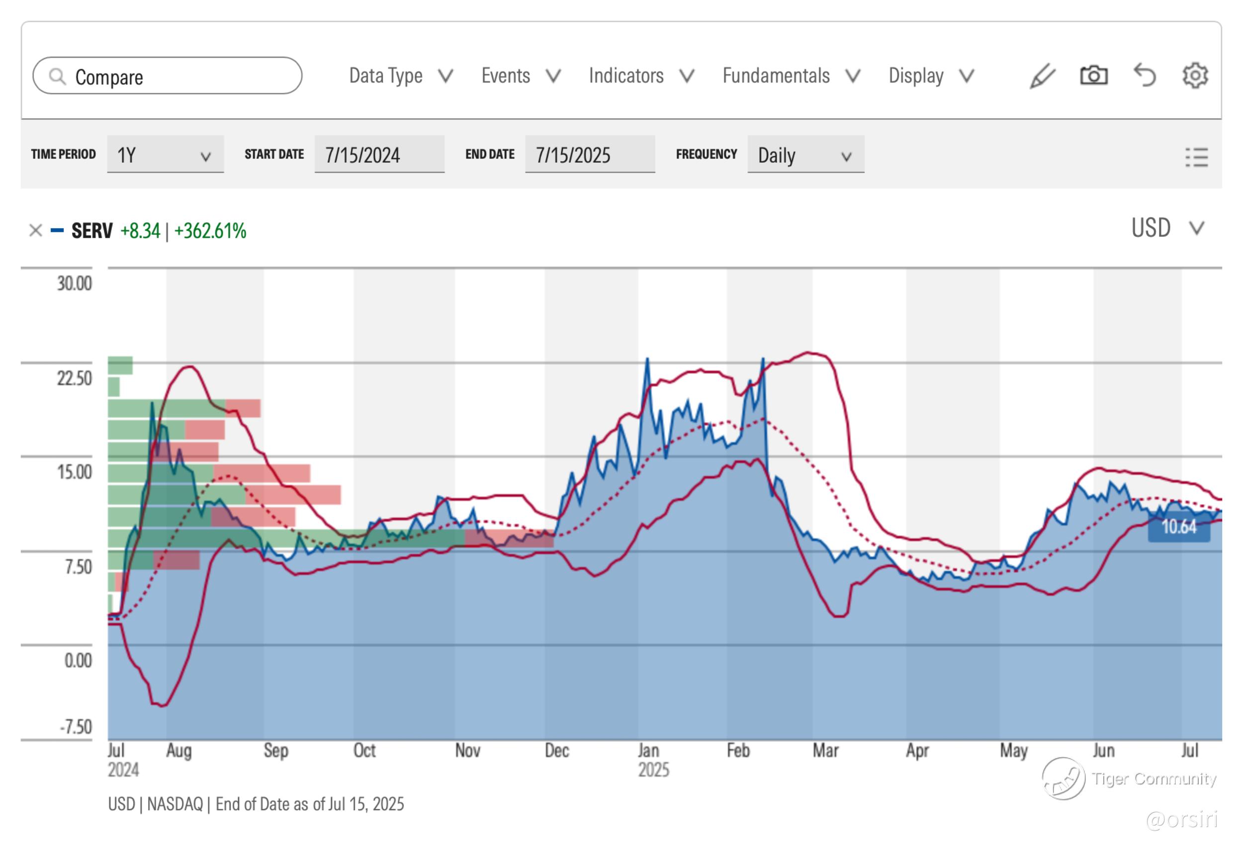 Bollinger squeeze or breakaway risk? SERV trades on a knife-edge