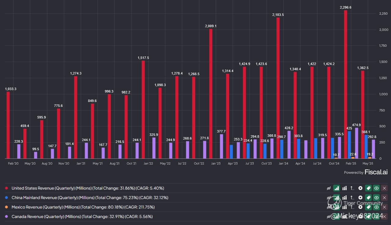 Beyond China, international sales climbed 17% across the Asia-Pacific region, as well as Europe, the Middle East, and Africa. This diversification mitigates the company’s exposure to U.S. tariffs by allowing it to redirect inventory and production to markets where trade policy is less punitive. In short, it provides management greater flexibility to maintain production scale without sacrificing margins to tariff costs.
