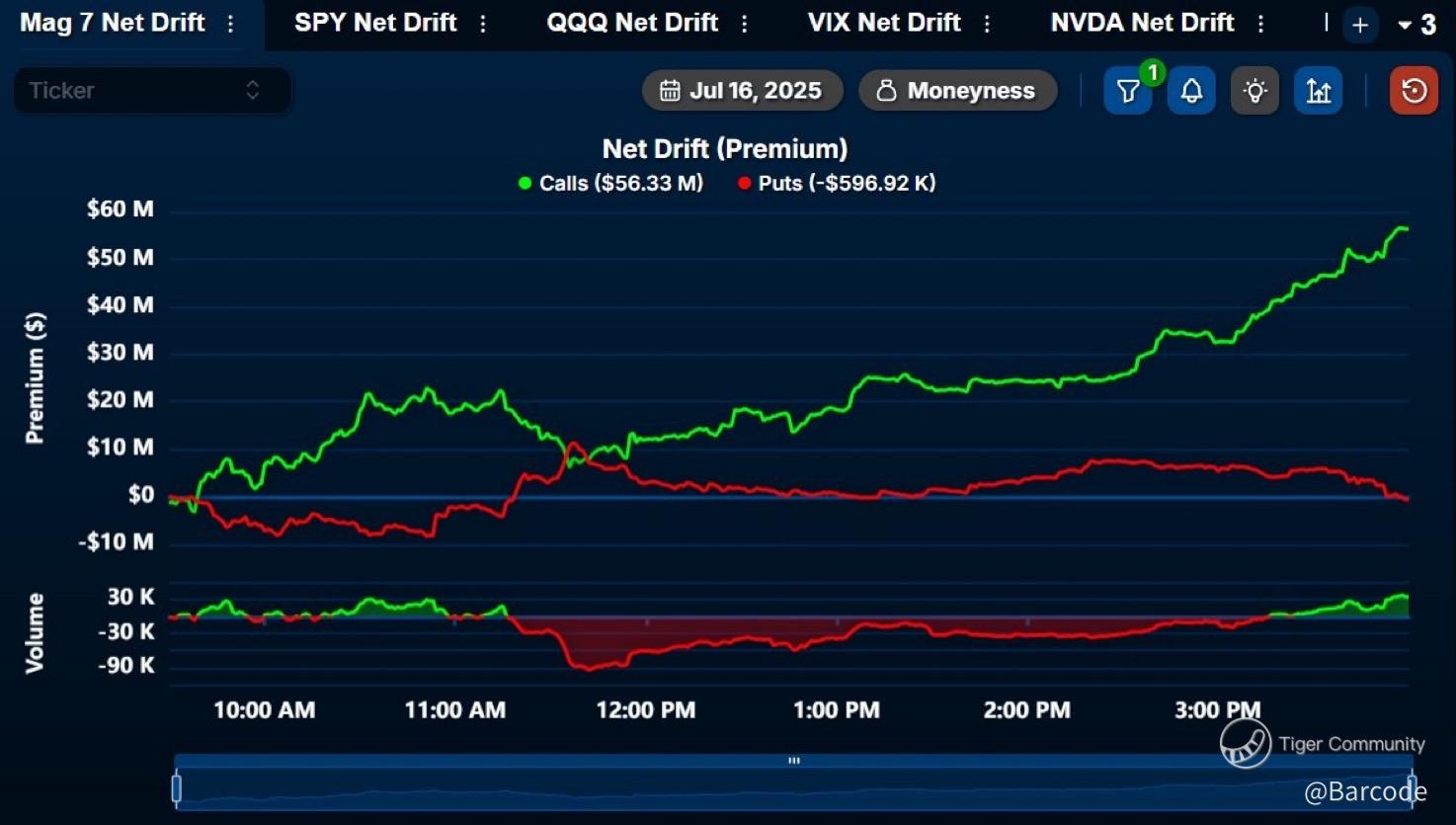 Right into the final 20 minutes, we saw a monster $56M in call premiums light up the Mag 7 like a Wall Street fireworks show. No easing up, no diversions; just pure directional conviction as institutions piled into the big tech elite, chasing momentum into the weekend close.