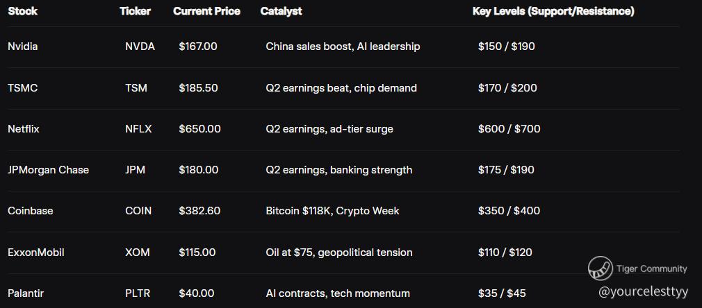 Q2 earnings are dropping like bombshells. Tech giants like Netflix and TSMC report today, alongside banking heavyweights like JPMorgan. Beats could ignite rallies; misses might trigger profit-taking. Volatility’s the name of the game.
