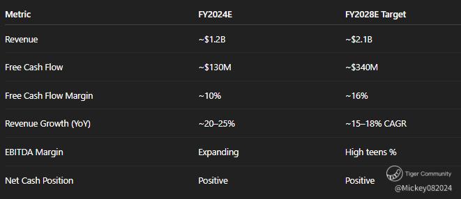 On an absolute basis, the company generated approximately $130 million in free cash flow last year, and management expects this to rise to $340 million by 2028, as operating leverage improves. However, due to dilution from stock issuances, per-share free cash flow growth has lagged headline growth — an issue investors must monitor closely.