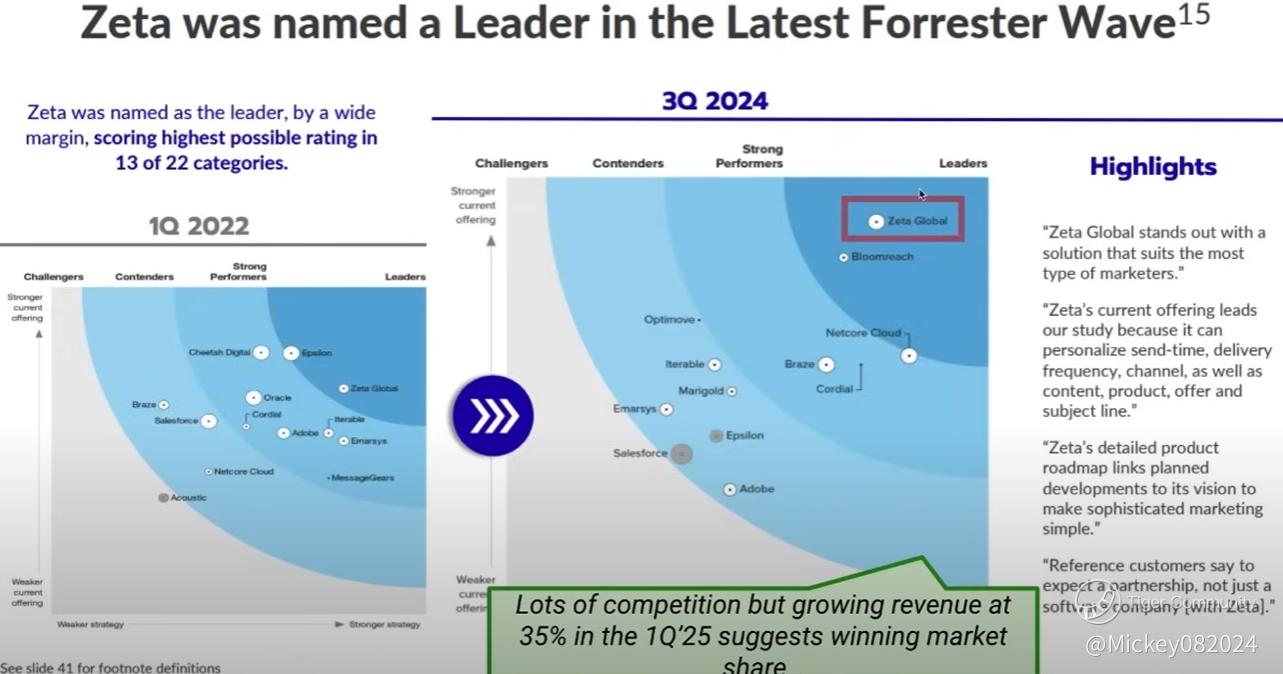 According to Forrester Research, Zeta ranks as a leader among marketing technology platforms — above average in functionality and execution. Its competitive advantage lies in its ability to integrate disparate data and channels into a unified platform, thereby lowering total cost of ownership for clients while improving marketing ROI.