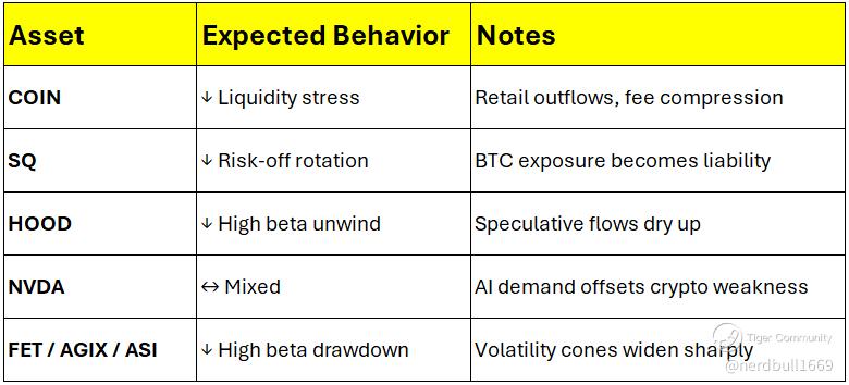 Interpretation: Defensive posture dominates; high-beta crypto stocks and tokens face asymmetric downside.