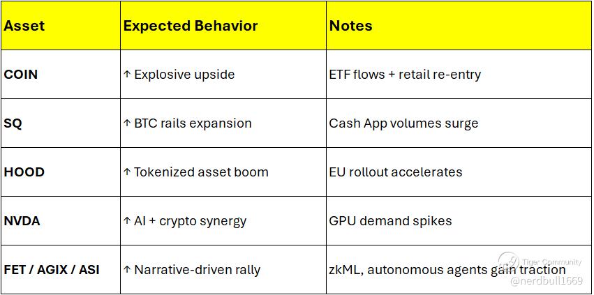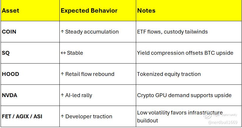 Interpretation: Reflation unlocks upside convexity across infrastructure, custody, and AI-crypto convergence plays.