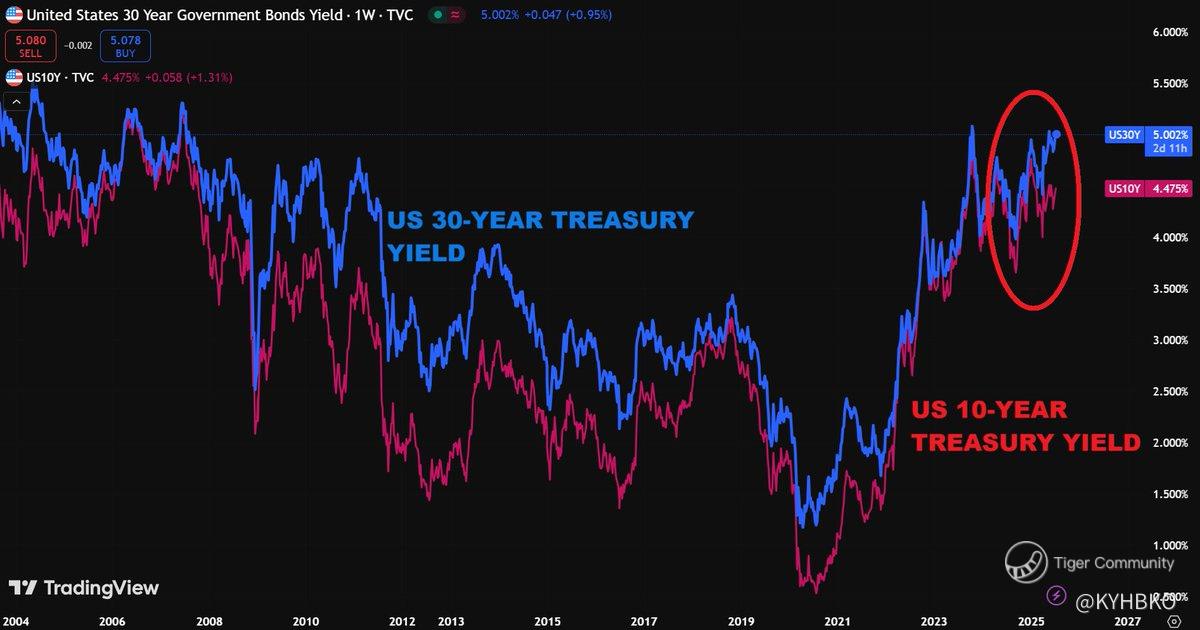The 30-year Treasury yield is once again trading above the 5.0% mark. It is nearing its highest level since 2007. Rising government spending and potential tax cuts are fueling global volatility in long-term sovereign bond yields.