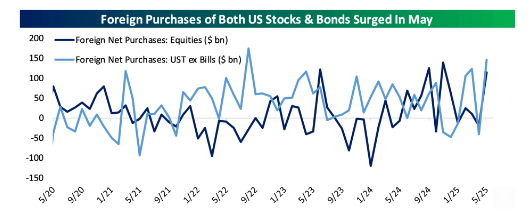 2.Foreign Investors bought roughly $250 Billion of U.S. Stocks and Treasuries in May, the highest amount since 2022 🚨🚨🚨 Thought they were leaving? 🤔