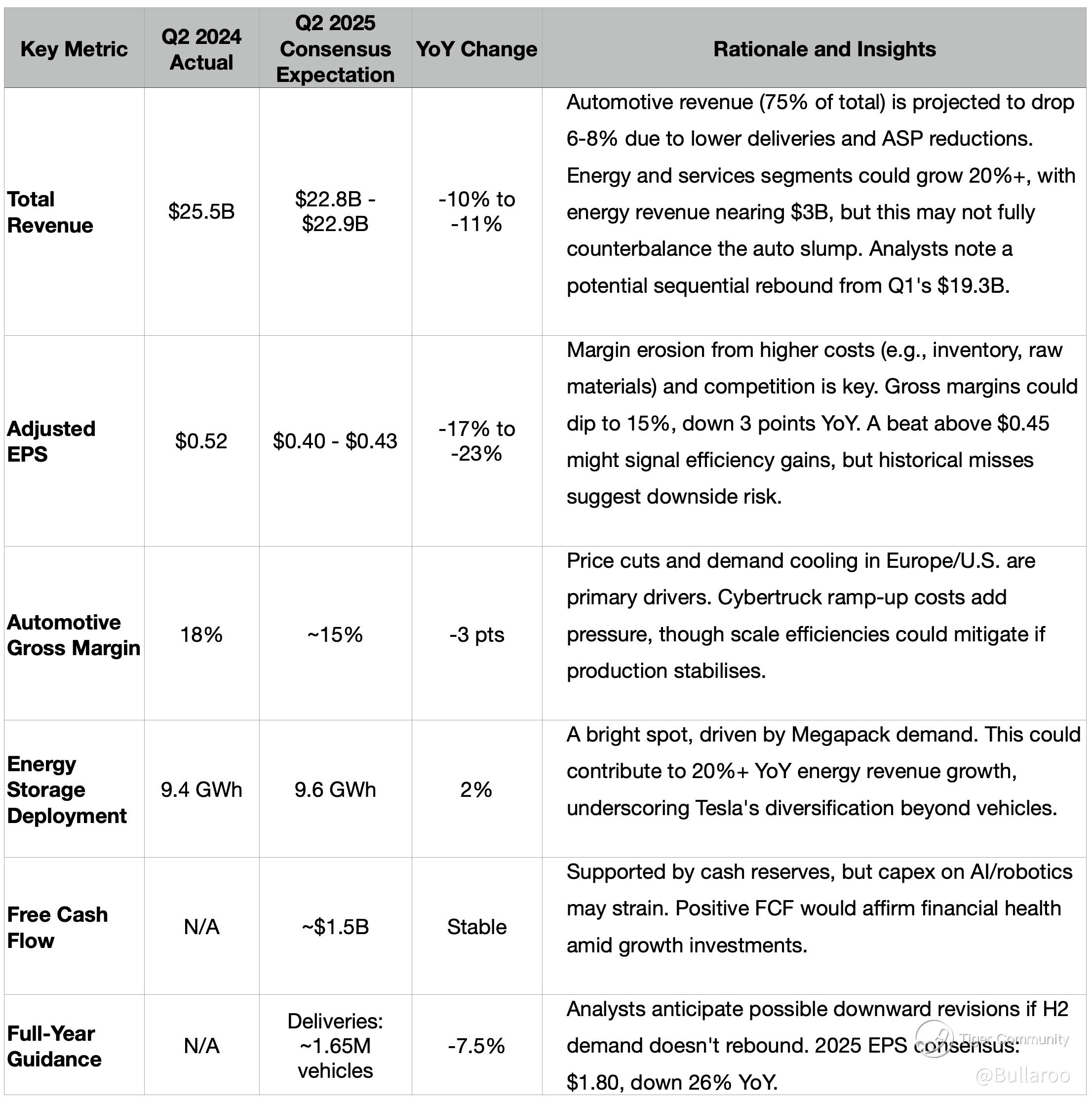 As Tesla Inc. ( $Tesla Motors(TSLA)$ ) approaches its Q2 2025 earnings release on July 23, 2025, after market close, investors are bracing for what could be another challenging quarter for the electric vehicle (EV) pioneer. The company, led by CEO Elon Musk, has faced a confluence of factors including softening demand, intensified competition, and macroeconomic uncertainties. Yet, amid these pressures, Tesla's ventures into artificial intelligence (AI), energy storage, and autonomous driving technology offer glimmers of long-term potential. This preview delves into the latest developments, analyst expectations, potential catalysts, and implications for the stock price, drawing on recent market data and expert insights.