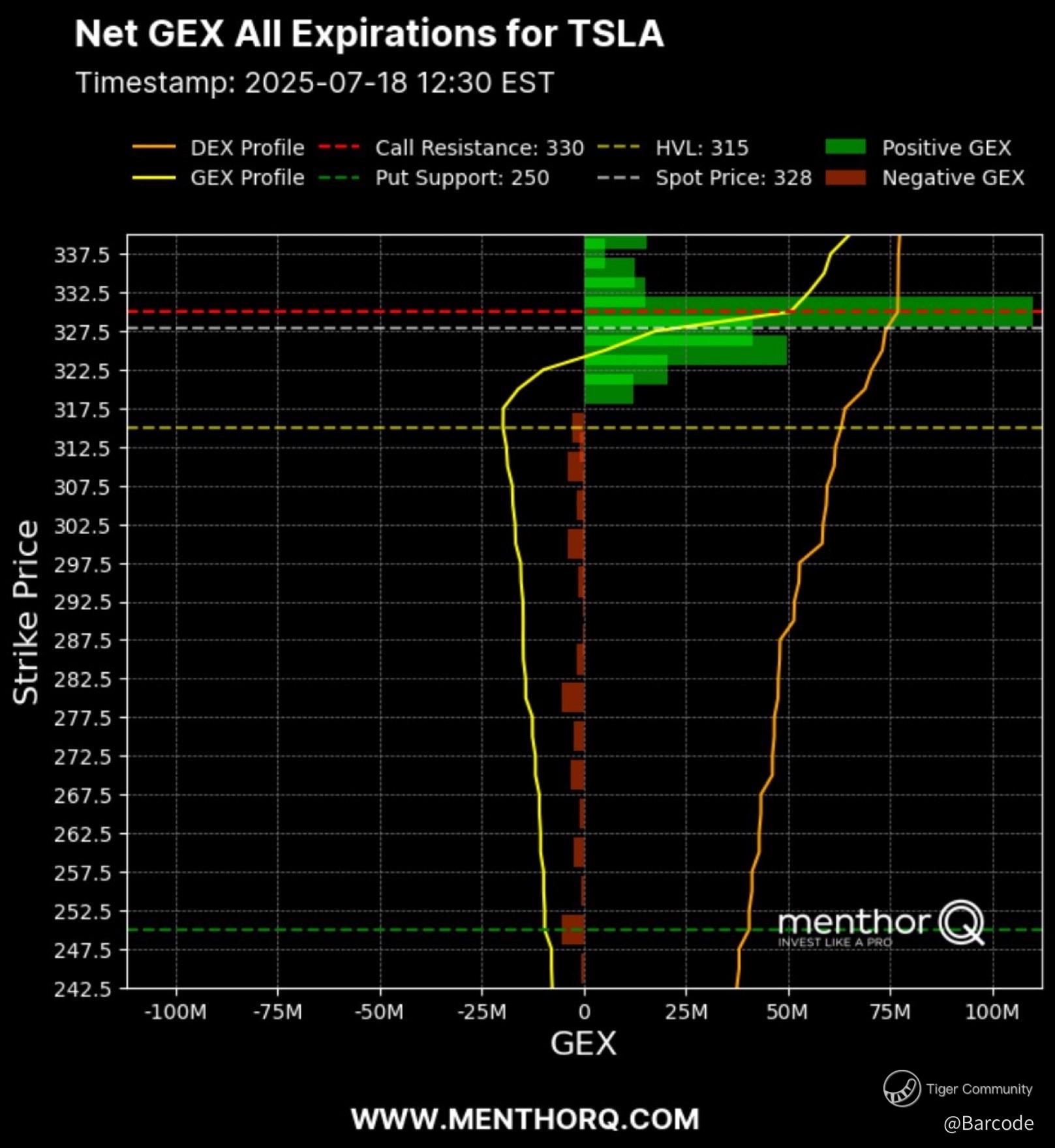 Dealers are leaning net-long, gamma exposure is positive, and Fridayās flow confirmed positioning into a volatility compression zone. Tesla is primed for expansion.