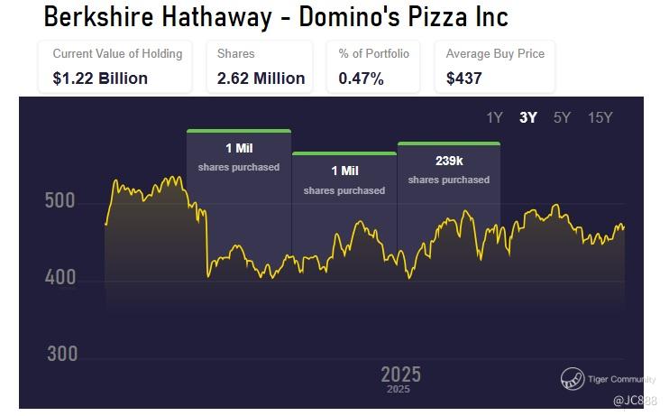 **Included Domino’s Pizza because Mr Buffett has bought 2.62 million shares of DPZ at an average price of $437. (see above)