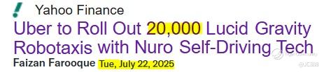 In greater details, UBER has inked a massive deal with LCID and autonomous software firm Nuro (privately owned) to launch its own robotaxi service in 2026. (see above)