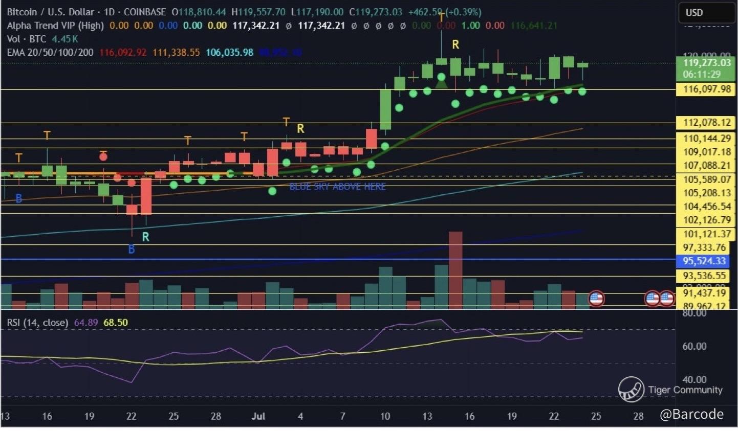 • Bullish trigger above $120,000