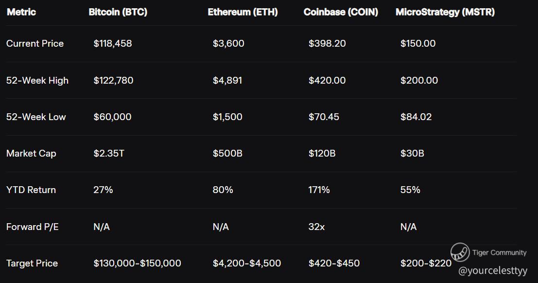 MicroStrategy ( $Strategy(MSTR)$ ): Up 55% YTD to $150, with a $10 billion Bitcoin treasury amplifying its correlation to BTC. Its high beta (1.96) offers leveraged exposure but also higher risk, per Bloomberg.
