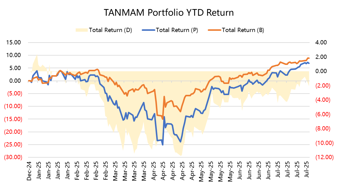 Year-to-date, the portfolio is still positive at +4.14%, though trailing SPY (+7.42%).