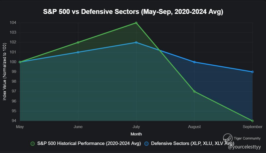 Historical data supports the user’s concern about a late-summer dip. From 2020 to 2024, the S&P 500 has often experienced pullbacks of 7-10% in August or September after strong spring and early summer gains. The chart above illustrates this trend, showing a normalized S&P 500 index declining in late summer compared to the relative stability of defensive sectors (XLP, XLU, XLV). Additionally, recent tariff announcements by President Trump, including 25% levies on Japan and South Korea effective August 1, 2025, and ongoing "Crypto Week" developments, could introduce further volatility.