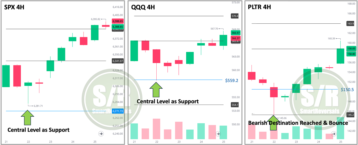 The Support and Resistance levels proved highly relevant for the week that just ended, let’s analyze the price action for $S&P 500(.SPX)$ $Invesco QQQ(QQQ)$ $Palantir Technologies Inc.(PLTR)$, as observed on these 4-hour charts. The 4H and 2H are the ones I normally use, but you can use shorter timeframes as long as you combine more technical indicators to reduce the risk to fall in fake moves.