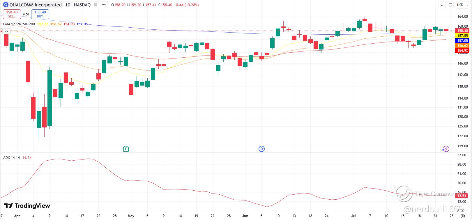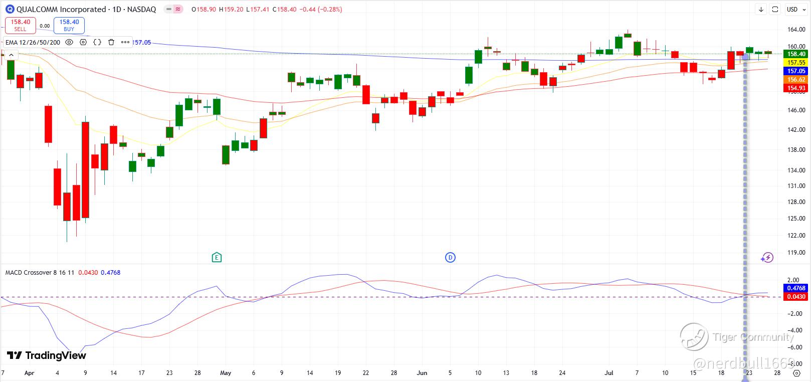 We saw MACD crossover happened on 23 July 2025, which is an indication of upside trend building up, though we are seeing a small consolidation from QCOM, I believe that we need to watch the price action closely next week before its earnings.