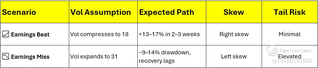• QCOM stands out with a favorable entry zone and compressed volatility—indicating potential convex upside if earnings surprise positively.