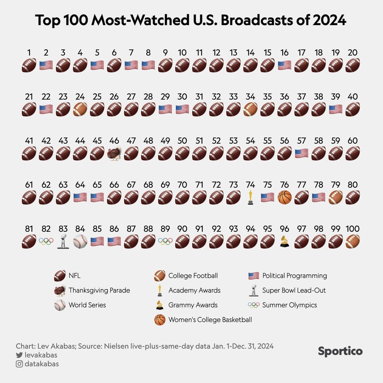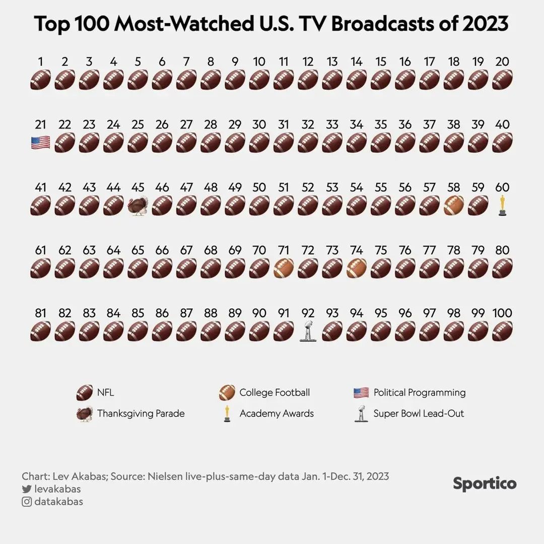 As Sportico shows below, outside of Presidential Debates and conventions, football is the most important thing for U.S. TV viewers.